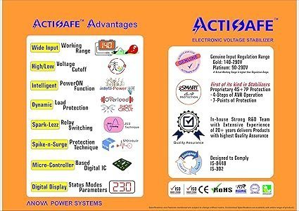 ACTISAFE ASL0318 Automatic Voltage LED Display Wall/Floor Mounted Stabilizer for one LCD/LED TV up to 32 inch &DVD/DTH(Glossy White) (Working Range: 150-290Vac)