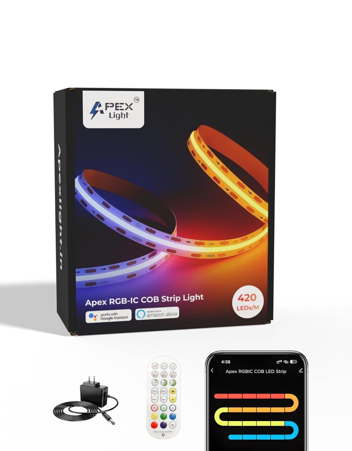 Apex LED Strip Light (5m/16.4ft), Smart LED Lights Compatible with Alexa and Google Assistant, WiFi App Control Segmented DIY Multiple Colors, Music Sync Light (RGBIC COB LED…(Pack of 4)