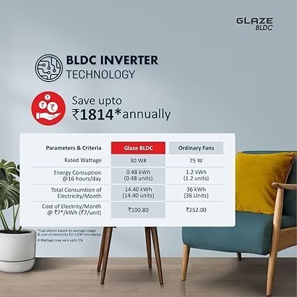 Be the first to review “Havells 1200mm Glaze BLDC Motor Ceiling Fan | Remote Controlled, High Air Delivery Fan | 5 Star Rated, Upto 60% Energy Saving, 2 Year Warranty”
