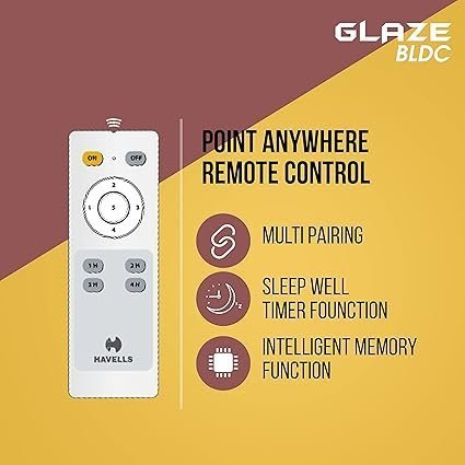 Havells 1200mm Glaze BLDC Motor Ceiling Fan | Remote Controlled, High Air Delivery Fan | 5 Star Rated, Upto 60% Energy Saving, 2 Year Warranty