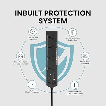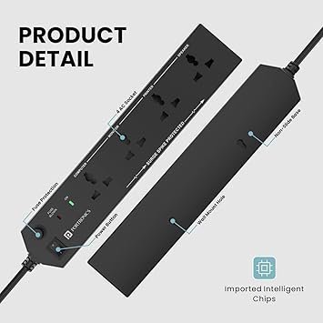 MOS Portronics Power Plate 10 Extension Board with 4 Universal Sockets, 3 Meter Long Cord, 1500 Watts, 6 Amp Multi Plug for Office & Home Appliances (Black)