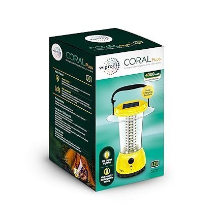 Wipro Coral Plus Rechargeable Solar LED Lantern (Pack of 1, Yellow)